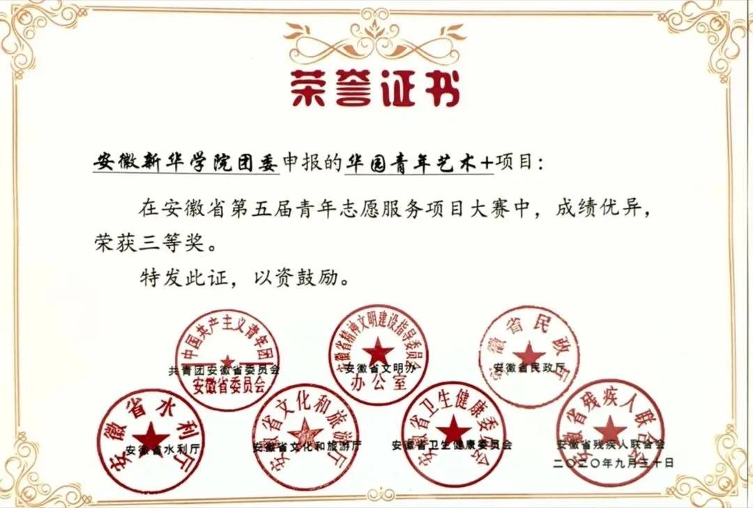 - 2020-11-11永利官网艺术学院志愿服务团队在“安徽省第五届青年志愿服务项目大赛”中荣获三等奖
