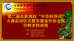 本网讯(通讯员:司长安)11月5日上午,第二届在肥高校“中华好诗词”大赛启动仪式暨安徽省作家协会主席许辉讲座在永利官网学术报告厅举行。本次活动由全国高校文学社团联合会、共青团3044am永利集团3044noc委员会主办,永利官网科技学院晨风文学社和学生社团联合会承办。