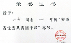 - 2015-06-11永利官网洪威老师荣获2014年度“安徽省优秀共青团干部”荣誉称号