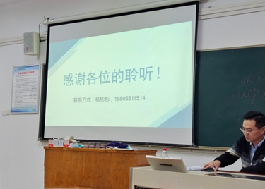 本网讯(通讯员:张劼) 为进一步突出课程建设的针对性和有效性,推动教师全员参与课程与教学改革,提升课程教学质量。12月1日下午,教师代表张劼在实验一号楼301会议室为全体教师作了以“一流课程建设经验和成果的交流与分享”为主题的讲座。