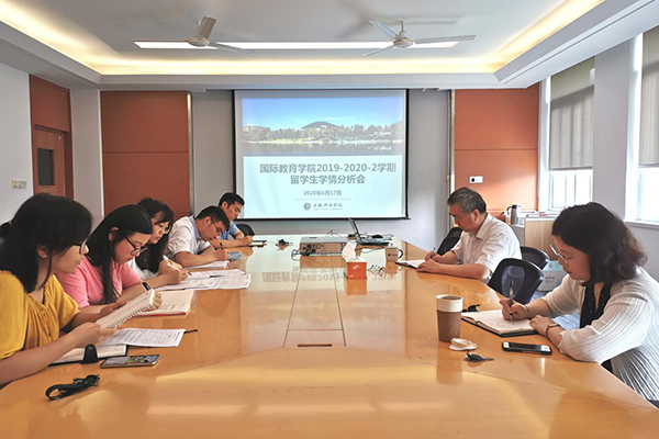本网讯(通讯员:闫翠萍)为精准分析本学期留学生学习及思想动态情况,部署下一步工作,6月17日上午,国际教育学院联合国际交流合作处召开了2019-2020-2学期留学生学情分析会。国际教育学院院长范东生,院长助理黄喆、程宜,对外汉语教研室全体教师及相关留学生管理人员参加了此次会议。