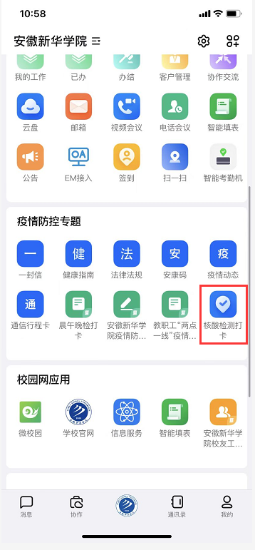 依据疫情防控需要,信息中心迅速响应,利用钉钉,先后搭建返校申请,疫情防控承诺书,每日健康打卡等线上流程,高效的完成相关数据收集,为学校时刻掌握师生的健康情况、行程轨迹提供管理抓手,并且为学校疫情防控科学研判提供数据支撑。