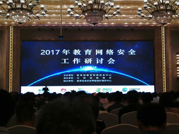本网讯(通讯员王志)5月17、18日,2017年教育网络安全工作研讨会在南昌召开,会议由教育部教育管理信息中心主办、江西省教育厅承办,中科院院士郑建华出席会议,全国各有关省市教育主管部门信息中心负责人、各有关高校及中职学校信息中心负责人、知名网络信息安全服务厂商等1500余人参会。会议由教育部教育管理信息中心副主任罗方述主持。永利官网信息化建设与发展中心负责人王志应邀参会。