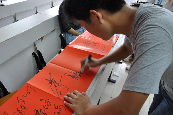 临别之际,土木与环境工程学院的同学们也用别样的方式表达自己对母校的感恩之情,2009级建筑工程技术3班的同学给母校留下了精致的水杯,表达对母校一“辈”(杯)子的感情。2008级本科生集体为了母校留下了祝愿的匾额,祝愿母校的发展一帆风顺,乘风破浪。