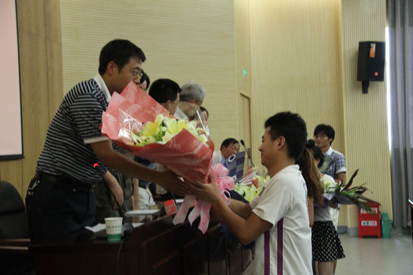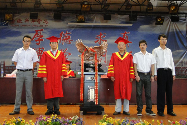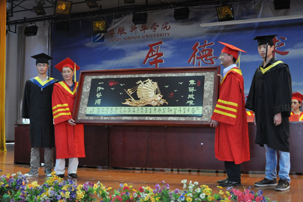 电子通信工程学院毕业典礼上,毕业生代表赠送了一个做工精美的展翅飞翔的雄鹰礼品作为礼物,表达了对母校、对老师的一片深情。