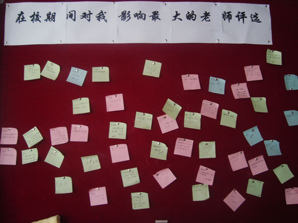 大学期间对我影响最大的老师评选活动让毕业生在外院大厅橱窗前停下了忙碌的脚步,同学们仔细回想着大学期间老师对自己的教诲。做人、做事、做学问,从各个方面感谢对自己影响最大的老师,带着老师们的教诲,毅然踏上征程。