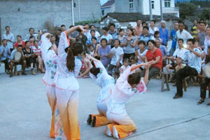 为了丰富茂林镇居民的精神文化生活,更好地服务百姓,队员们共组织5场文艺下乡演出,演出地点有镇中心广场、街道社区、农村大院以及养老院。观看群众达3000人左右,一时在全镇引起轰动,群众对永利官网大学生的表演好评如潮。在第一场演出后,前来观看的老百姓久久不愿离去,其中有位奶奶问我们:“小伙子,明天还有演出吗?”“有!”拖着疲惫的身体,我们依然很开心。在潘村的演出结束后,正当大家庆功时,两位舞蹈演员突然中暑晕倒,就在大家手忙脚乱的安置晕倒的演员时,潘村的村民纷纷赶来送水送药,主动要求用摩托车载她们去医院。