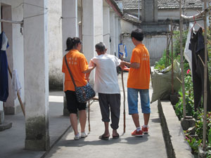 时间过得很快,表演结束后我们就要乘车离开了,老奶奶老爷爷拉着同学们的手不愿放开,再三叮嘱要注意防暑。车子渐行渐远,车子里一片安静,大家都趴在后车窗上望着敬老院的老人们,老人们站在门口久久不愿散去……