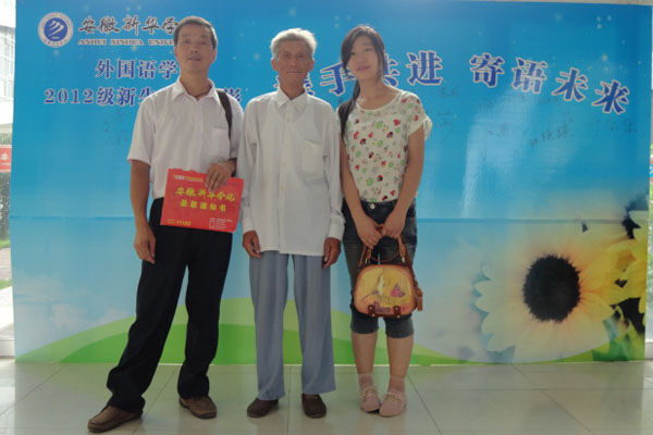 走进外国语学院,大厅摆放的一面留影签名墙,前来报到的新生在墙上签下自己的名字,由工作人员为新生及家长拍照留影,并当场用打印机打印出来。待迎新结束之后,所有的合影照片都会贴在这面留影签名墙上,并在翰林广场上展览。外国语学院的家长休息室内还播放着学校十年校庆晚会视频,休息的家长们都看得津津有味。