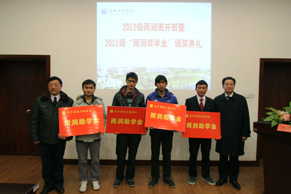 会上,梁金喜对“雨润班”的新同学表示欢迎。他说,2012级“雨润班”是雨润集团和3044am永利集团3044noc共同设立的第二届校企合作班,双方在第一届合作班办班经验基础上共同努力,“订单培养•校企合作”班一定会结出丰硕之果。他希望“雨润班”的同学在校珍惜学习机会,努力学习理论、实验知识和技能,到雨润集团能从基层工作做起,雨润集团也将为学员提供发展的平台和系列培训。叶朝赞宣读了颁发“雨润助学金”的文件。马凤余、梁金喜为获得“雨润助学金”的4名同学进行颁奖。.