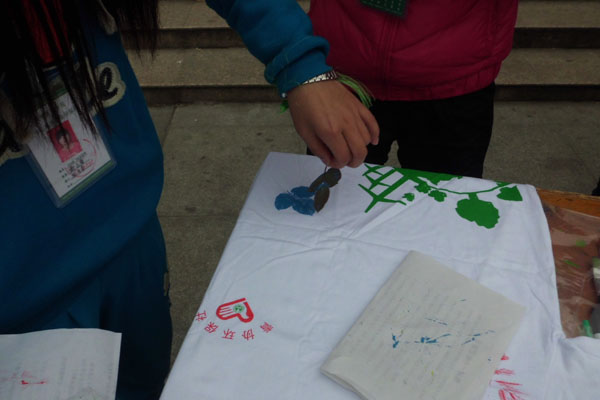 据了解,此次活动准备已经有了一个月之久,分别有图片展、行为艺术展、叶拓等活动形式。在行为艺术活动,志愿者们以翰林广场作为舞台,现场表演精美的舞台剧,包含节能天使、减少滥砍伐、保护地球环境、小树苗成长记、毁灭、小红帽的故事、我是最后一棵树、地球上最后一棵树、环保校园行、遗忘一系列九个不同的行为艺术剧,通过志愿者们生动形象的表演,向同学们传递着从每一个人做起,积极应对环境问题,节约能源,构建和谐美好家园的理念。志愿者刘贞汉透露道,在此之前,永利官网青年志愿者协会从来没有使用过行为艺术这种类型的宣传方式,这对于志愿者们来说是一个很大的挑战。为了使表演更加直观、形象、生动,他们放弃了自己的课余时间,几乎每天都要排练到晚上11点,这样的状态,他们坚持了一个多星期。在活动中,新颖的叶拓也是一大亮点,志愿者们在自己的衣服上印上各种颜色的树叶,呼吁同学们要保护环境。
