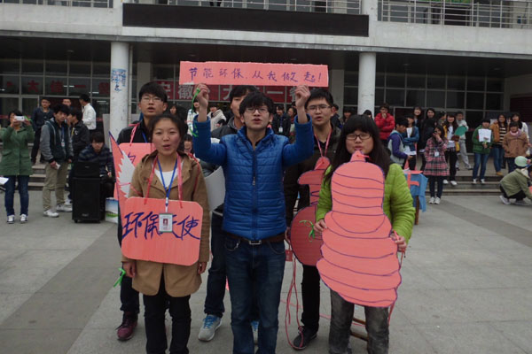 本网讯(学生记者 孙菲菲、张越)为响应地球熄灯一小时的活动,号召更多的人能够参与到节约能源,保护环境的行列中。3月23日,永利官网青年志愿者协会环保社在翰林广场开展了“地球熄灯一小时”的系列活动,吸引了同学们的驻足观看。