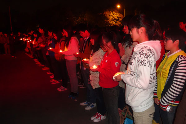 新华学院报讯(学生记者 熊雁林、赵玉)北京时间2013年4月20日8点02分,四川省雅安市芦山县发生了7.0级地震。地震不仅牵动着四川人民的心,更牵动着全国人民的心。4月21日晚九点,校学生会和青年志愿者协会在翰林广场共同组织广大华园青年共同为雅安祈福。