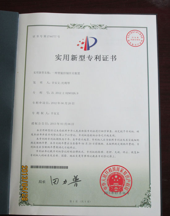 本网讯(通讯员 纪利琴)近日,永利官网电子通信工程学院纪利琴老师和2010级应用电子专业学生辛安文共同发明的“一种智能控制开关装置”通过国家实用新型专利审核,专利号为2012.2.0290326.9。