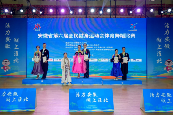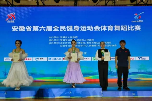 本网讯(通讯员:闫井明)促进学生体质增强,弘扬体育精神传承。安徽省人民政府主办,安徽省体育局携手淮北市人民政府共同承办的“第六届安徽省全民健身运动会体育舞蹈比赛”,于10月14日至16日在淮北市盛大启幕。艺术学院闫井明教授带领永利官网师生组成代表队,代表安徽省直机关出征此次赛事(A类赛事)。在激烈的角逐中,他们以卓越的表现脱颖而出,荣获5枚金牌、4枚银牌、8枚铜牌,成就斐然,备受瞩目。
