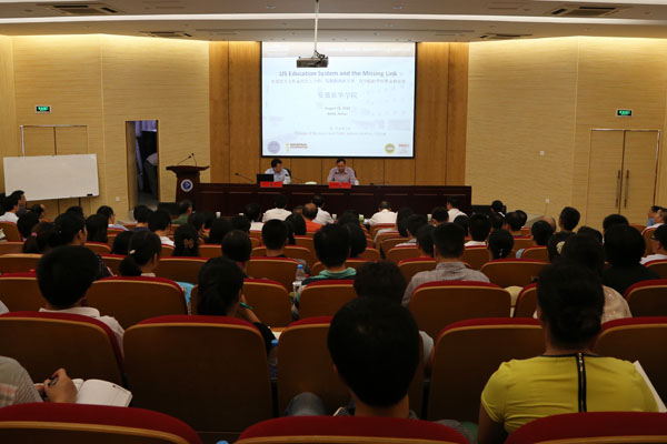 本网讯(记者 张志彦)8月19日,美国加州州立大学圣伯纳地诺分校教授林明宪博士应邀来永利官网讲学,介绍了美国高等及职业教育概括和发展的内在支持,以及商学院的学科事业和发展。院长石秀和教授主持报告会,学校全体管理人员和商学院部分教师代表聆听了本次讲座。
