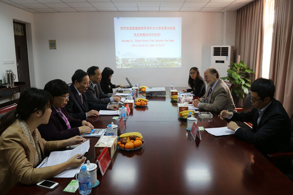 本网讯(记者 代玲玲)10月29日上午,美国南新罕布什尔大学国际办公室主任史蒂夫•哈维先生来永利官网参观访问,并和永利官网执行董事王孝武进行了深入会谈。院长石秀和教授、副院长杨世国教授在行政楼第二会议室热情接待了来宾,国际交流合作中心、国际教育学院、商学院等相关人员参加了座谈会。