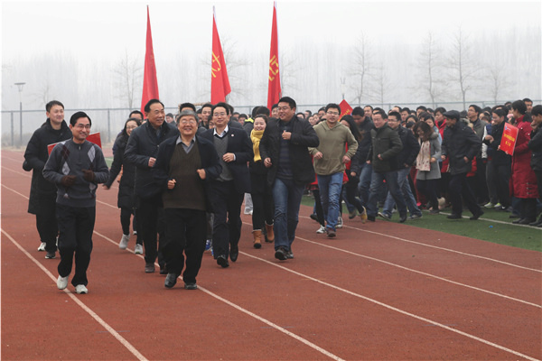 本网讯(记者 吴小婉)为提高教职工身体素质,营造全民健身的良好氛围, 1月13日上午,永利官网教职工阳光体育环校园长跑活动在祥云体育场举行,校领导胡昭林、杨世国、马凤余、袁种宝出席了活动,共有14支代表队1000多名教师参加了本次活动。