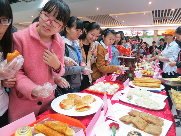 此次评比活动现场设在校三期生活服务中心御金香餐厅二店,共有五家学生食堂参加评比,参赛的早餐品种有中式面点、西式甜点和各类花式糕点等百余种。为保证整个评比活动的公平公正,总务处专门邀请了来自校内不同二级单位的14名领导和教师担任现场评委,来自不同专业和不同年级的200余名学生代表共同参与现场品尝互动和投票评比。副校长王可担任活动总指导和特邀颁奖嘉宾。