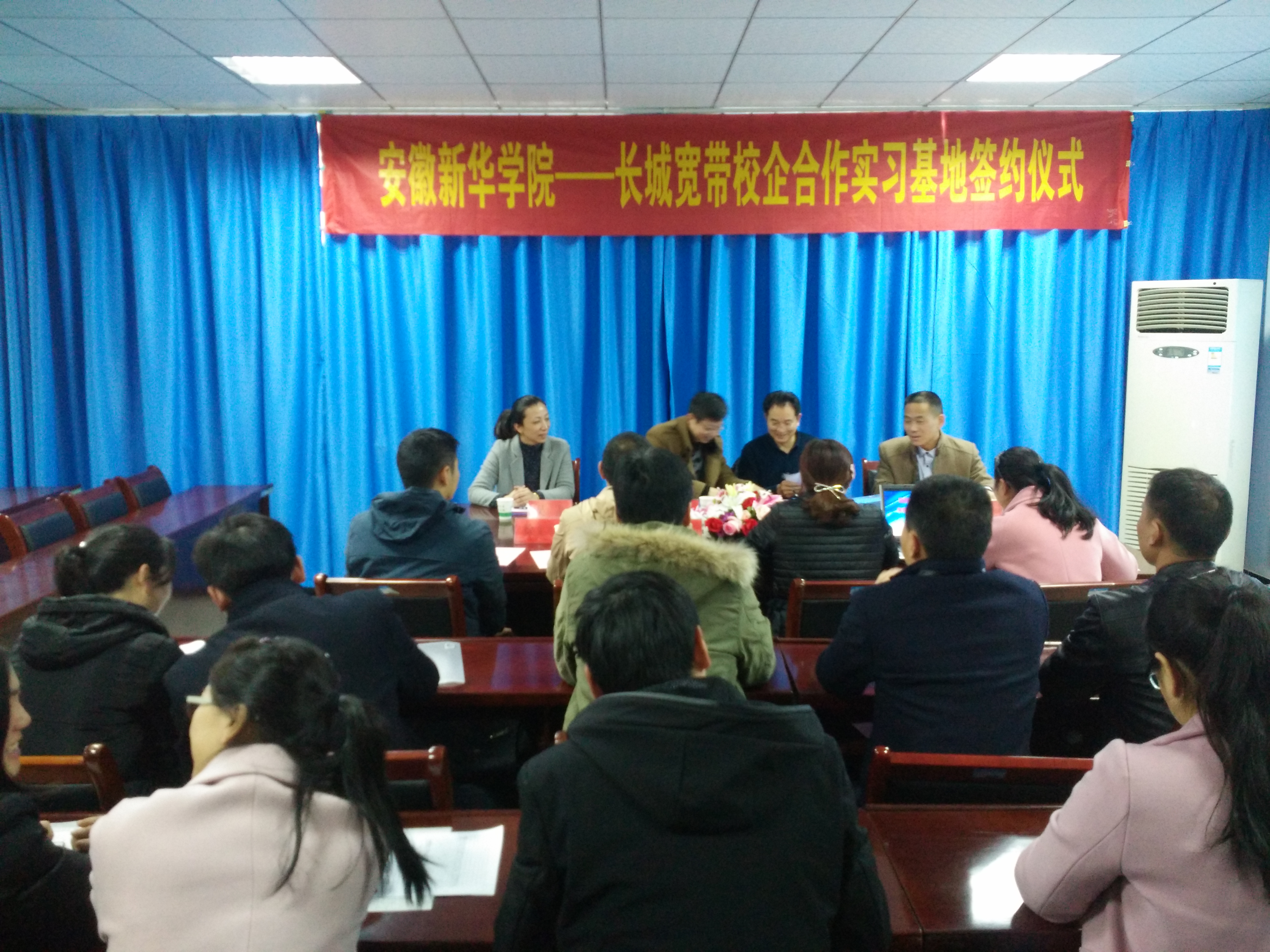 最后,马凤余对此次校企合作提出三点要求,一是希望双方今后应在提供实习岗位、落实毕业生就业等方面展开进一步交流;二是希望教师能深入长城宽带一线进行学习,了解企业对人才的需求;三是希望以“校企合作实习基地”为纽带,优势互补,资源互用,切实增加人才培养的实效性,实现合作双赢。