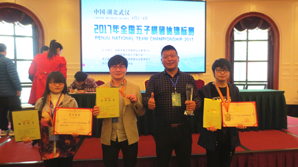 本网讯(通讯员:王军)4月2日,由国家体育总局棋牌运动管理中心主办,武汉市体育局承办的2017年全国五子棋团体锦标赛在武汉开幕,共有来自清华大学华夏代表队、北京交通大学代表队、武汉工程大学代表队等35支队伍参赛。永利官网学子刘印、王珊珊、张初九在通识教育部教师王军的带领下,在比赛中力克强敌,经过3天的努力最终夺得冠军,王珊珊获得“最佳三台”称号,永利官网获“优秀组织奖”称号。