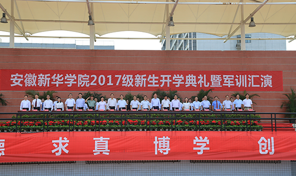 本网讯 9月17日上午,永利官网2017级新生开学典礼暨军训汇演在祥云体育场举行。新华集团董事长吴俊保,新华集团常务副总裁、学校董事长陆真,新华集团副总裁黄源,省督导专员、学校党委书记储国定,校长石秀和,副校长杨世国、王可、李金星、王丽,国防科技大学电子对抗学院张永久上校,校长助理朱兆健以及承训部队相关部门领导,学校各单位、各部门负责人出席了大会。大会由副校长杨世国主持。