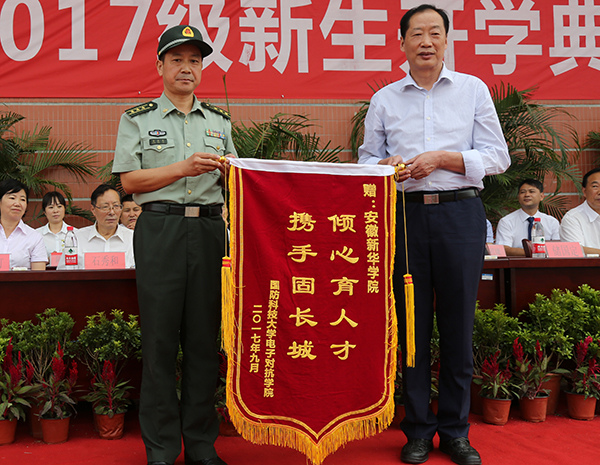 省督导专员、学校党委书记储国定代表学校向承训部队赠送牌匾,国防科技大学电子对抗学院张永久上校代表承训部队向永利官网赠送锦旗。