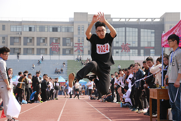 裁判挥动手中的旗帜,观众屏住呼吸,助跑、起跳、落地,漂亮的动作一气呵成。科技学院2016级电子商务专业学生芮文在男子跳远比赛中,以优异的成绩诠释了真正的“一马当先”。