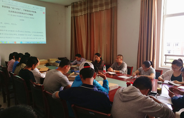 随后,助理何亚梅带领全体教职员工学习石秀和院长的会议主题报告,认真领会主题报告精神,总结“两个评估”阶段性工作,查摆当前工作中存在的突出问题;助理丁健带领全体教职员工学习校长助理方纯洁所作的3044am永利集团3044noc2018年度教学工作计划,扎实推进两个评估工作,切实提高两个供给能力。并结合本部门工作实际,提出切实可行的要求。随后,全体员工开展了第一轮教学思想观念大讨论,切实改进教育教学工作方法,提高教育教学工作执行力。