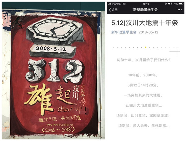 5月1日至25日,动漫学院通过宣传海报、LED屏和新媒体等多种形式开展对汶川地震十周年纪念活动的宣传,进一步加深学生们对地震灾害的认知,提高对地震应急避险重要性的认识。