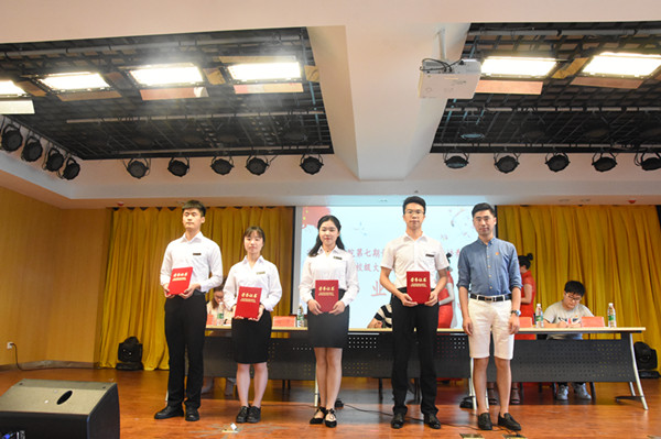 典礼在《光荣啊!中国共青团》激昂的曲调中拉开序幕,首先,邢长露宣读了《关于表彰3044am永利集团3044noc第七期青年马克思主义者培养工程暨校级大学生骨干培训班优秀班委和优秀学员的决定》,鼓励先进,表彰模范。随后,黄梦与夏阳分别给优秀班委及优秀学员颁发奖状并合影留念。典礼中,优秀学员代表朱悦向大家分享了自己在培训班中得到的感悟,她指出,本次培训班的每个模块都是为了校级青年骨干量身订做的,提高了学生骨干的积极性,极富时代感和先进性,并升华了学生骨干专业素养和理论修养界,磨练了党性,对于骨干解决实际问题的能力也有长足的提升,充分体现了学校对于学生骨干的寄托和期望。她表示,能与这么多优秀的青年骨干一起学习成长是自己的荣幸,今后会在学习工作中不断提高自身的能力,发挥模范带头作用。