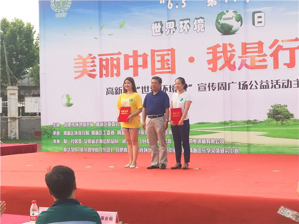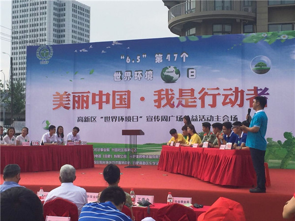 本网讯(通讯员:肖华君)6月5日,合肥市环保局、高新区管委会主办的“美丽中国·我是行动者”世界环境日主题宣传公益广场活动在合肥桂花园学校举行。永利官网科技学院“暖心”志愿者服务队作为协办方共有30余名志愿者参加了活动。