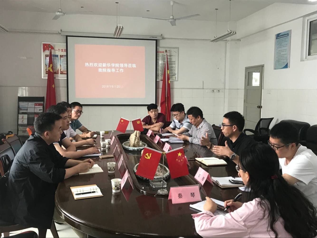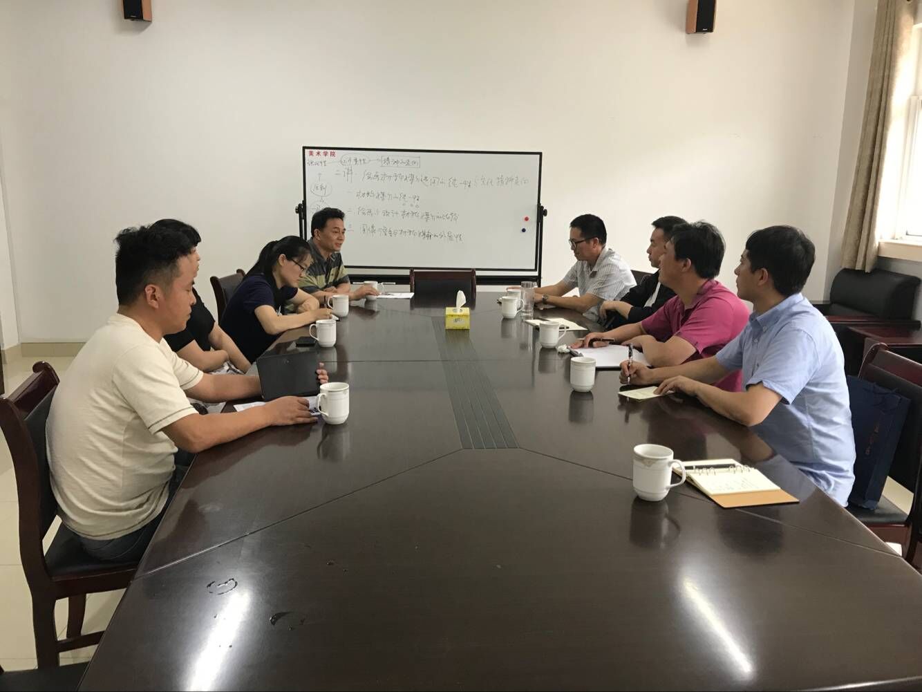 6月20日上午,许存福一行赴宿州学院美术与设计学院,院长李杰以及科级以上干部、书法学专业相关教师接待了考察组。副院长许兴海代表学院对动漫学院一行的到来表示热烈欢迎,并就学院的基本情况进行了汇报,重点介绍了在学科专业建设、师资队伍建设及实验室建设等方面的情况。李杰教授对书法学专业的申报、培养方案的制定、师资队伍建设、以及在教学运行中可能会遇到问题进行了说明。