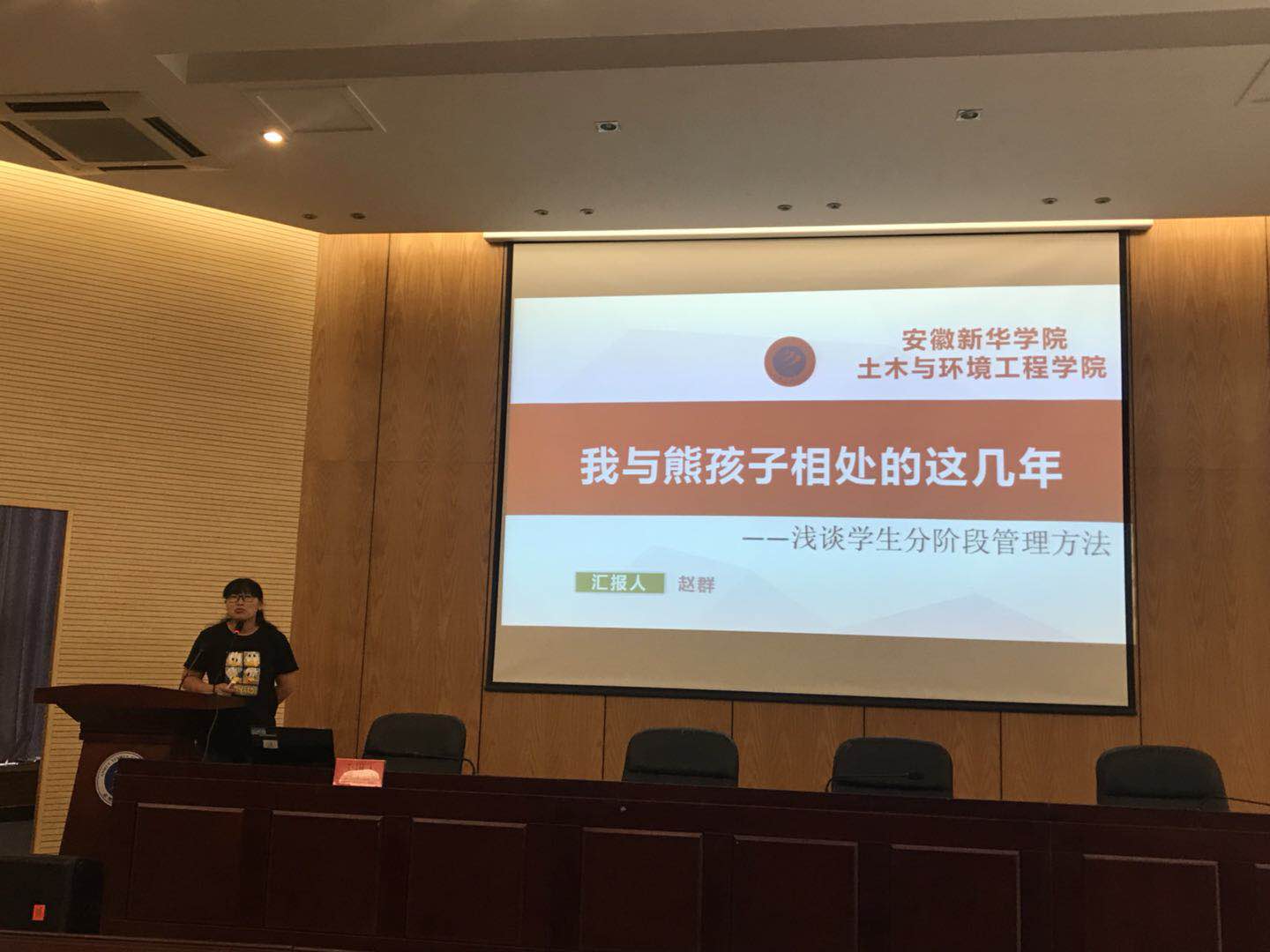 随后,土木与环境工程学院教师赵群作主题为“浅析分阶段学生管理”的工作交流。赵群将大学四年分为“彷徨 呐喊 伤逝 朝花夕拾”四个阶段,她细化梳理了每个阶段的重点工作,用真实生动的案例,风趣幽默的语言详述学生工作的点点滴滴,充分体现了永利官网辅导员老师们细心暖心的工作态度与严谨务实的工作作风。