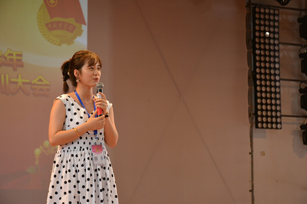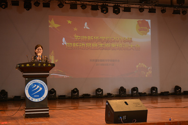 大会在青春激昂的团歌中拉开帷幕,所有志愿者高唱团歌,挥洒热情。接下来,优秀志愿者代表王阳阳同学从自身经历出发,分享迎新志愿感悟,并针对本年度迎新志愿服务注意事项进行培训。王阳阳详细列举新生报到可能会出现的困惑,以及志愿者在迎新过程中可能会出现的状况,还强调志愿者们应该时刻铭记自己作为“学校移动的形象”的责任,时刻牢记作为志愿者的宗旨与使命,传承上一届学长学姐们的爱心和奉献精神。王阳阳在其生动的演说中体现自己专业的服务工作,给在座的志愿者上了生动且高效的一课。而后,全体志愿者在优秀志愿者代表耿言佳同学的带领下庄严宣誓。声声誓言,饱含着志愿者的爱心和奉献精神。