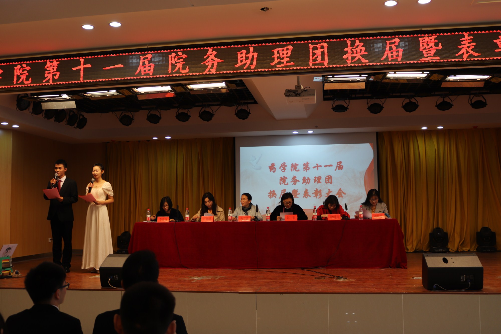 本网讯(通讯员:汪涵涵)为了加强学生自我服务意识,完善药学院院务助理团的整体工作队伍,10月15日,药学院第十一届院务助理团换届暨表彰大会在小礼堂成功召开。药学院行政副院长余立新,行政秘书兼助理团指导老师汪涵涵,学管秘书和辅导员参加了本次大会。参与此次会议的还有各二级学院学生会代表,各兄弟社团代表以及药学院第十一届院务助理团全体成员。
