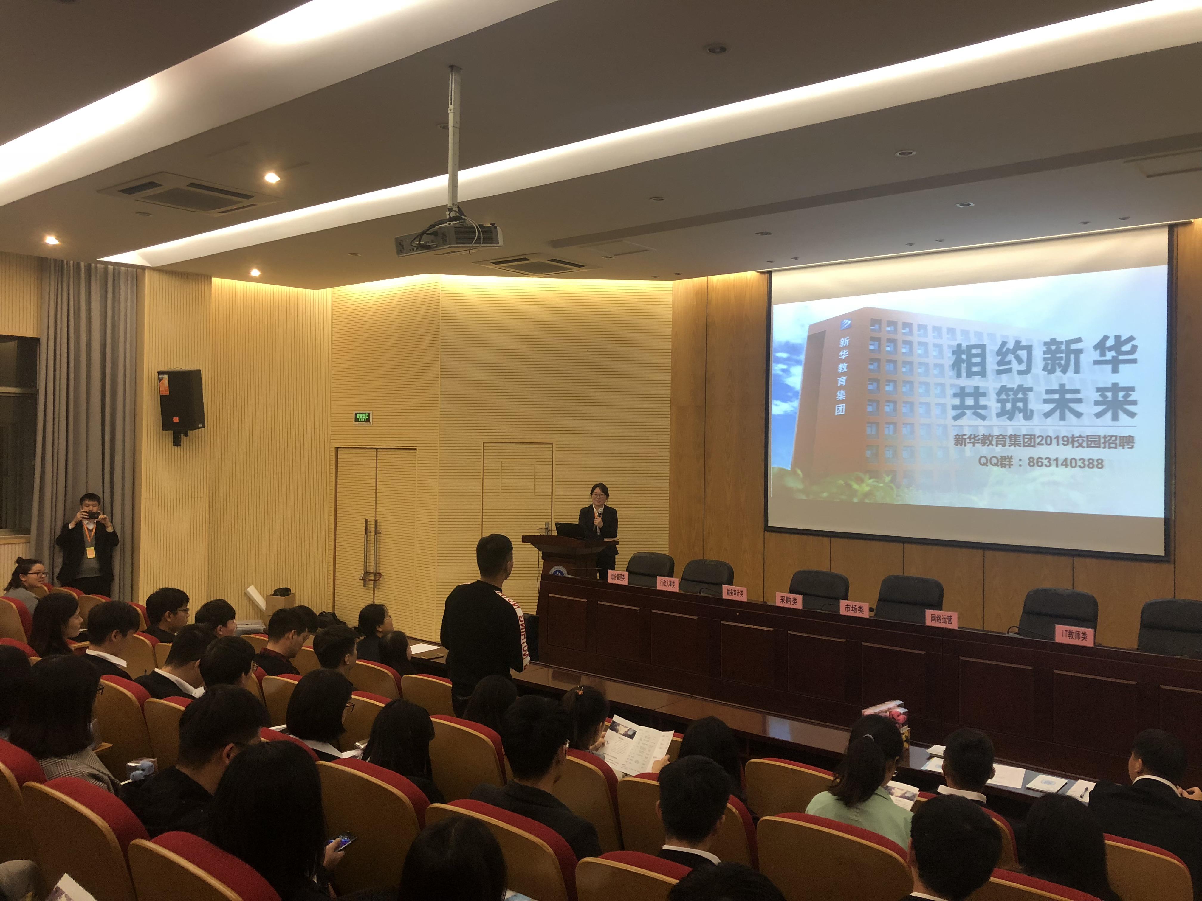 本网讯(通讯员:龚欣)为切实做好毕业生就业工作,大力构建毕业生与用人单位的交流平台,积极为用人单位输送应用型人才。10月18日晚,永利官网学生处邀请安徽新华教育集团在学术报告厅举办了专场宣讲会,安徽新华教育集团人力资源部招聘经理康秋锦主持宣讲会并分享经验,各二级学院2019届优秀毕业生参加了此次宣讲会。