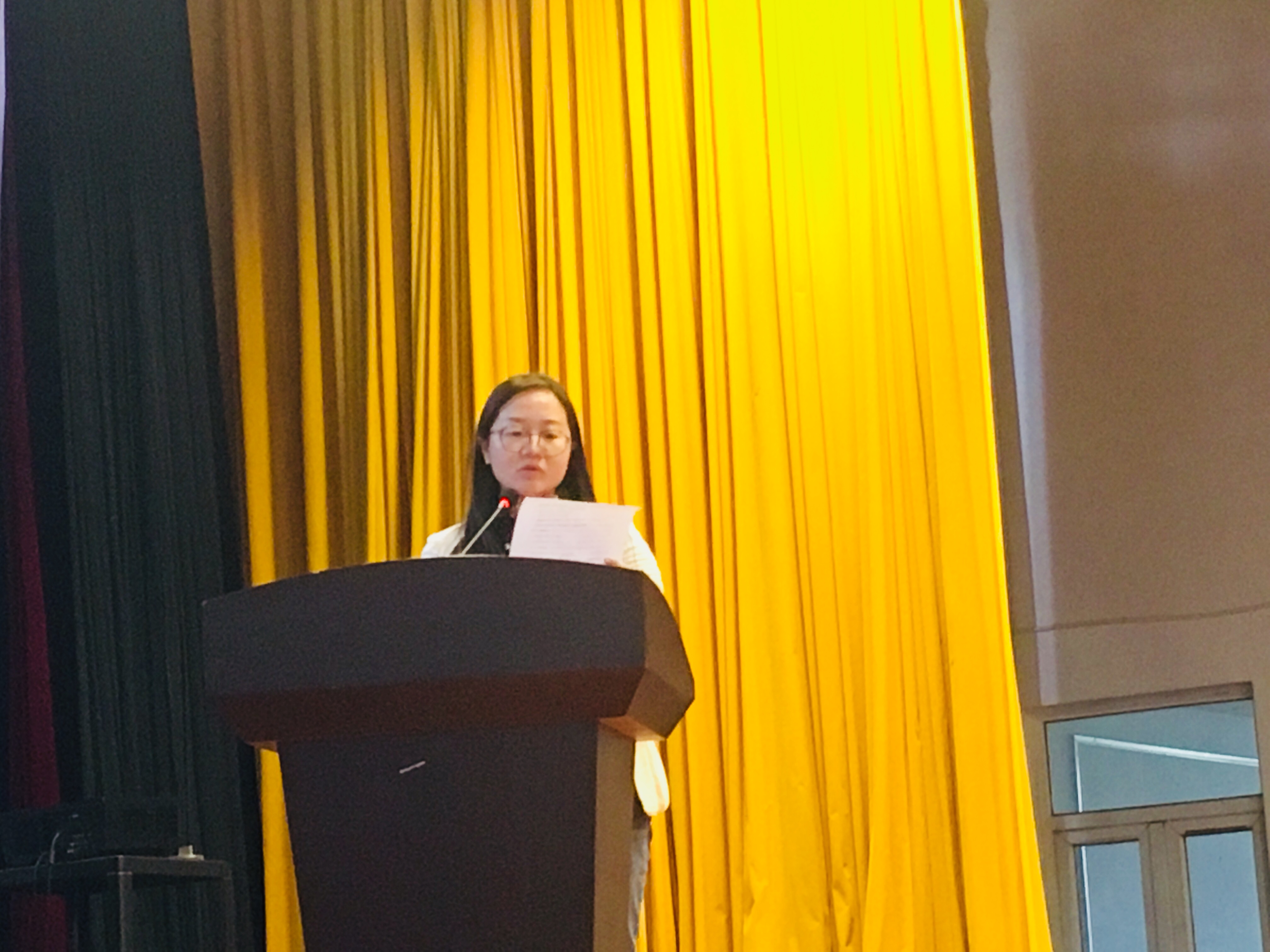 结合典礼伊始的党员活动月总结视频,信息工程学院大学生成长教育研究室主任潘兰兰为学院十月党员活动月作了总结汇报。汇报中,潘兰兰为此次党员活动月的内容作详细介绍,她指出,此次活动是信息工程学院为了深入推进基层党组织标准化建设,践行“党建+学管”的管理模式 ,是在院党总支的领导下开展的。