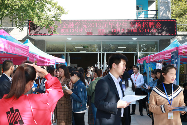 本网讯(通讯员:魏银银)为做好学生就业服务工作,为毕业生创造更多的就业机会、搭建良好的就业平台,切实提升毕业生就业层次和就业率,10月26日,财会与金融学院在教学12号楼大厅邀请天源迪科、中国人寿等12家国内知名企业,针对2019届毕业生成功举办了一次专场招聘会。