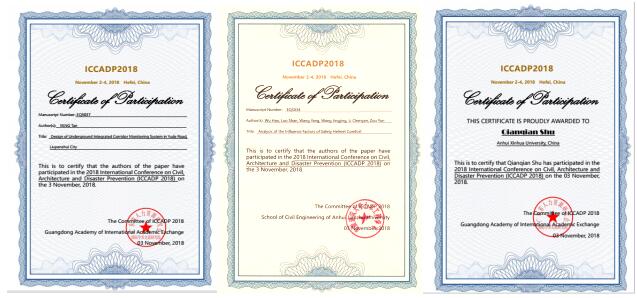 本次会议共收录来自全球相关领域学者撰写的学术论文160余篇,其中永利官网师生撰写的论文“Design of Underground Integrated Corridor Monitoring System in Yude Road, Liupanshui City”和“Analysis of the Influence Factors of Safety Helmet Comfort”被会议收录并提交EI检索。