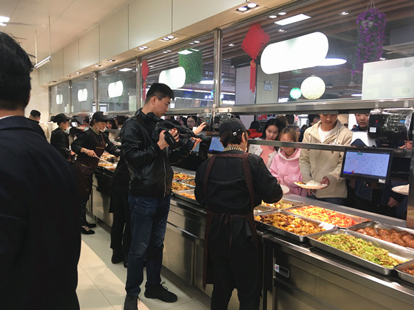 王文金一行前往永利官网二期食堂,就学生食堂的安全管理、菜品供应、食品加工操作规范、食品留样及原材料存储等情况给予现场工作指导,合肥电视台新闻频道《食安合肥》栏目组实时跟踪报道并在就餐现场展开采访。