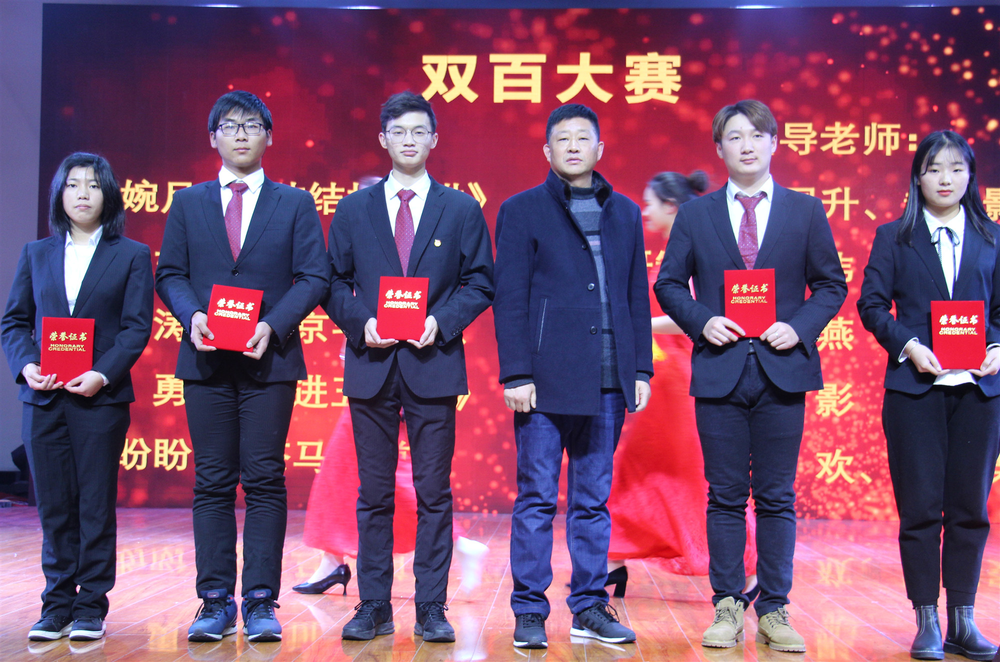 赵影带领学生进行朗诵,张国升为优秀指导老师和最佳校企“国胜大药房”颁奖。