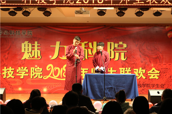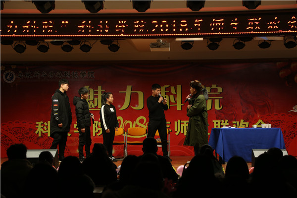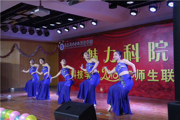 本网讯 (通讯员:肖华君)12月13日晚,为加强科技学院师生的情谊,丰富课余生活,给师生提供一个展示才艺的舞台,科技学院在大学生活动中心举行“魅力科院”师生联欢会,科技学院执行院长孙成伟以及全体教职工观看了晚会。