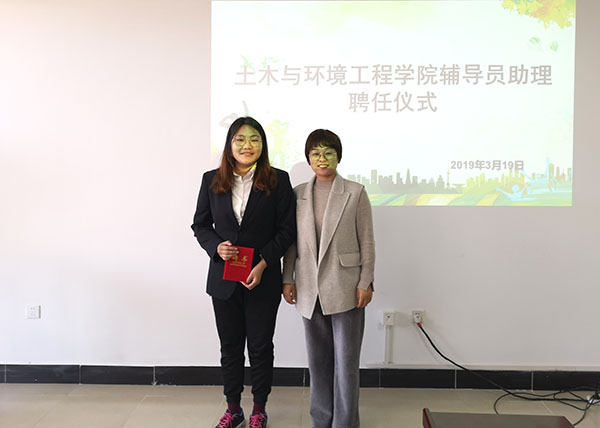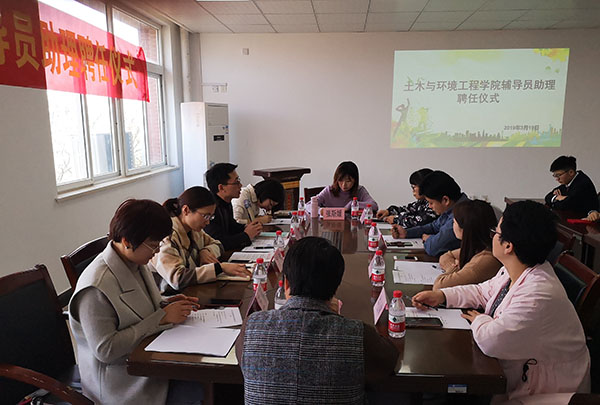 本网讯(通讯员:魏高莉)为进一步发挥土木与环境工程学院辅导员助理的重要作用,促进学生管理的科学化、规范化和制度化, 3月19日中午,土木与环境工程学院举行辅导员助理聘任仪式,土木与环境工程学院副院长朱诵贵,行政秘书、刘伟及全体辅导员参加本次聘任仪式, 仪式由学管秘书魏高莉主持。