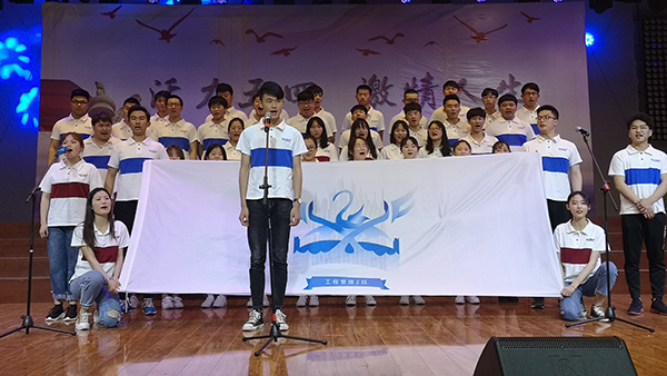 参赛队伍有的改编歌曲,有的穿插诗歌朗诵,同学们用不同的方式展示了青春不一样的风采,精彩的表演博得了观众的阵阵掌声,也赢得了评委的一致好评。最后,2018级安全工程1班以《我们都是追梦人》取得第一名的好成绩,作为追梦人的他们拿到了属于自己的荣耀,并将全力以赴追逐梦想。