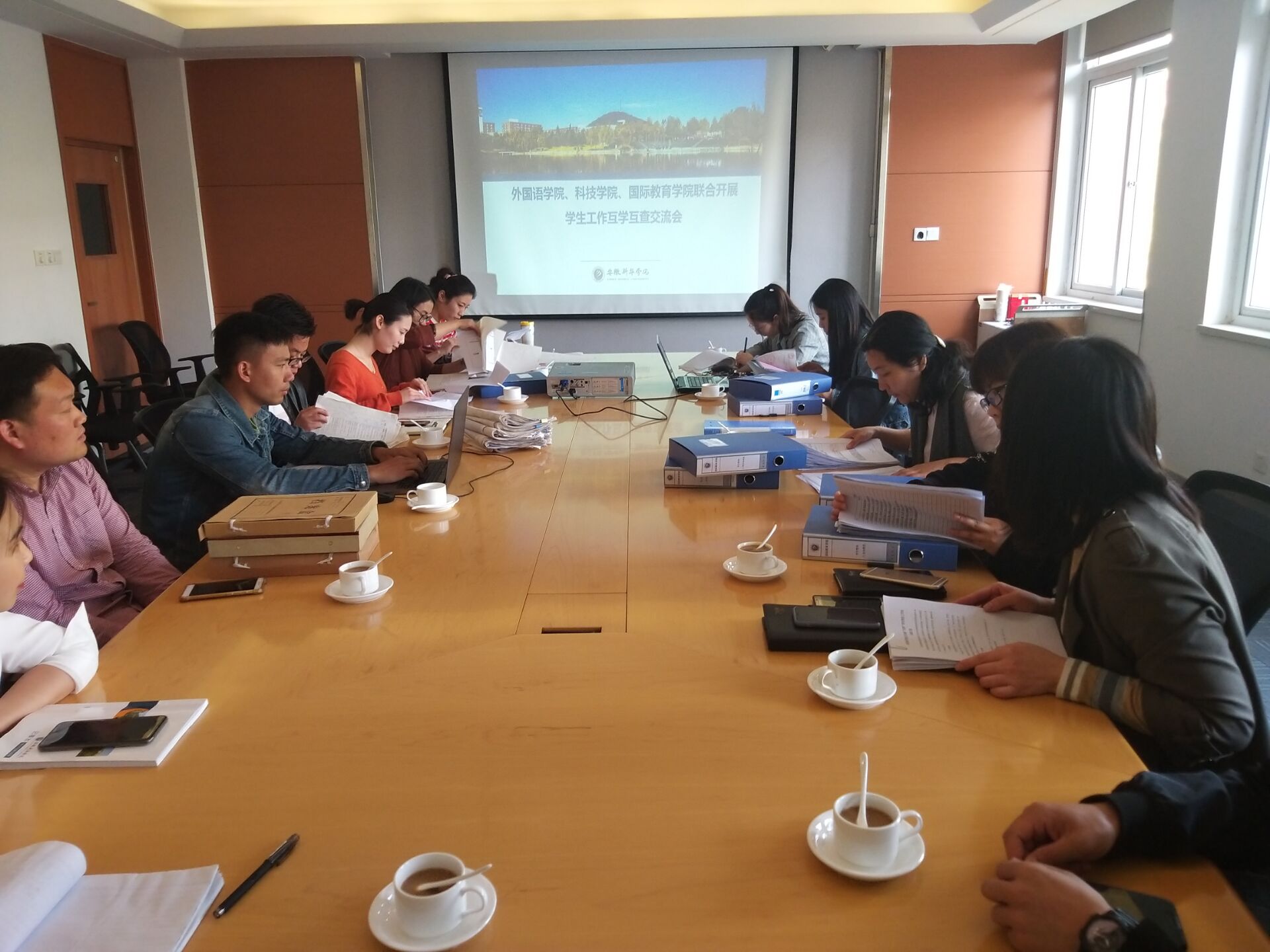 本网讯(通讯员:汪涵涵)为了进一步做好学生工作,根据校学生处相关文件要求,4月17日上午,国际教育学院、外国语学院、科技学院联合开展学生工作互学互查交流会,学生处处长助理凌晨、国际教育学院院长助理周倩、学生处主管姚蓓、李梦、张婷婷、外国语学院和科技学院行政秘书、学管秘书携两院全体专兼职辅导员代表参会。