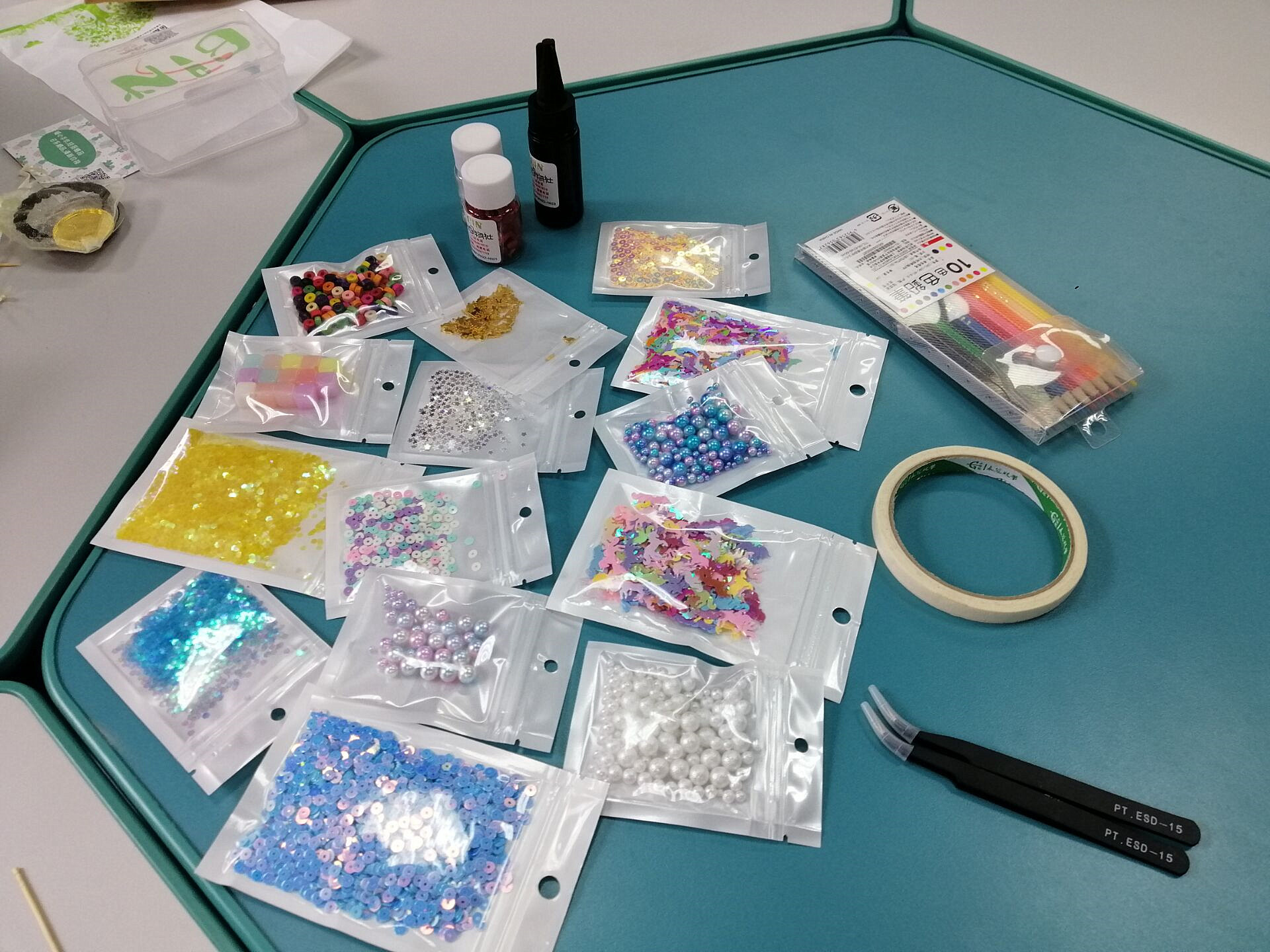 BIN日式生活馆邀请了日本创意手作大师久後美弥老师带领同学们亲自动手制作发圈。本次“创意手作”的原材料采用了日本进口无毒UV胶,把胶水滴进不同形状的模具中,就可以变成独一无二的作品。发圈制成后,久後美弥老师还与同学们围坐在一起进行"手作知识有奖竞猜"游戏。