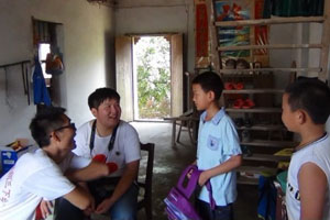 爱心课堂的教室中来了一位大朋友,原来是一个孩子的父亲闻讯前来听课。课间,队员们与这位家长进行交流,了解了当地留守儿童家庭的情况和造成留守儿童问题的成因。