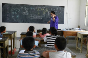 队员们把支教活动命名为“爱心课堂”,内容涵盖了自然科学、趣味语文、英语和美术。课堂上,从未接受过多媒体教学的孩子们被有趣的课件所吸引,纷纷簇拥在队员旁边观看电脑上的内容。天气炎热,细心的实践队队员还为孩子们买来冷饮消暑。