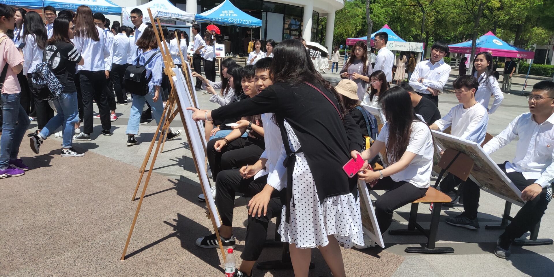 艺术学院2017级各班级联合开展了“美好相随,艺画同行”活动。发现美、感受美、传播美是本次活动的宗旨。午间的翰林广场艳阳高照,为活动增添了更多热烈的气氛,2017级班级学生代表们现场作画,他们用熟练地素描和速写生动的描绘出了往来师生的形象,一旁还伴随着教师的耐心指导。本次活动展现了我院师生热情活力、积极进取的风采,在展现我院学生专业素养的同时也展现了当代大学生对文化艺术的美好传承。在繁忙的学习生活中,使师生们感受到艺术的力量,感受到生活的美好,为促进永利官网学生身心健康发展起到了推动作用。